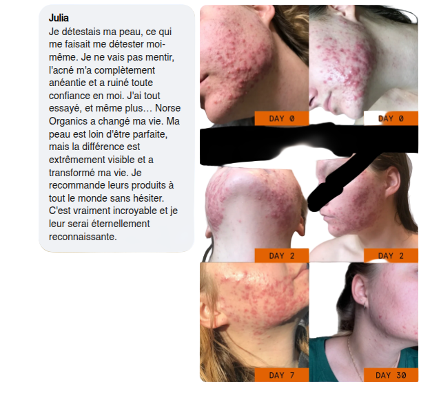 Chaque ingrédient de ce produit a été ajouté dans un seul but : stopper l’acné au plus vite et préserver la santé de la peau durablement, pour éviter toute récidive. Tous les ingrédients sont ajoutés sous leur forme la plus biodisponible et la plus riche en nutriments, contrairement à d’autres marques qui utilisent des versions bon marché et en trop faible dose.