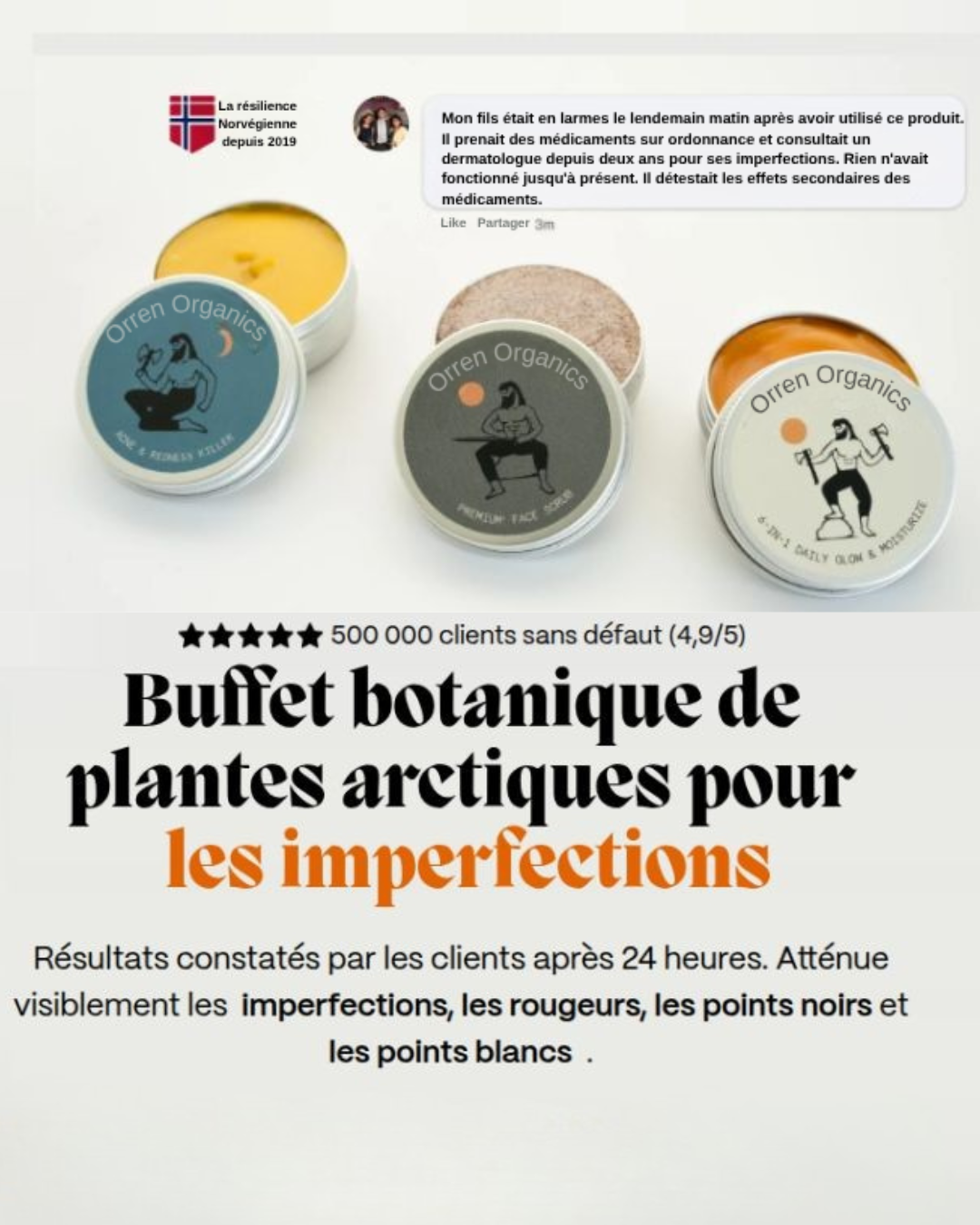 Une arme puissante et rapide contre l'acné. Cueillie à la main en haute montagne en Norvège, où la plante regorge de nutriments. Ses résultats quasi magiques sont démontrés par de nombreuses études.